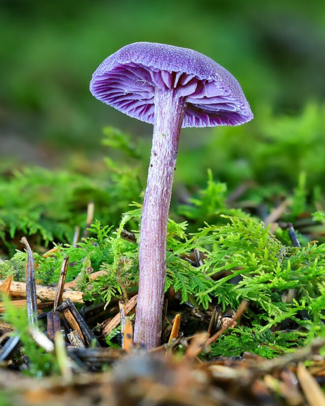 This mushroom looks like it rolled out of the wardrobe department for Avatar. A shock of violet against the brown forest floor, the Amethyst Deceiver is so vividly purple it almost seems bioluminescent under the right light.